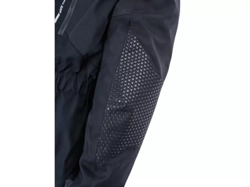 - Ventilations et aérations sur la poitrine et au dos grâce à des fermetures éclair déperlantes, qui assurent une entrée d’air efficace sur et à travers les ouvertures de la membrane